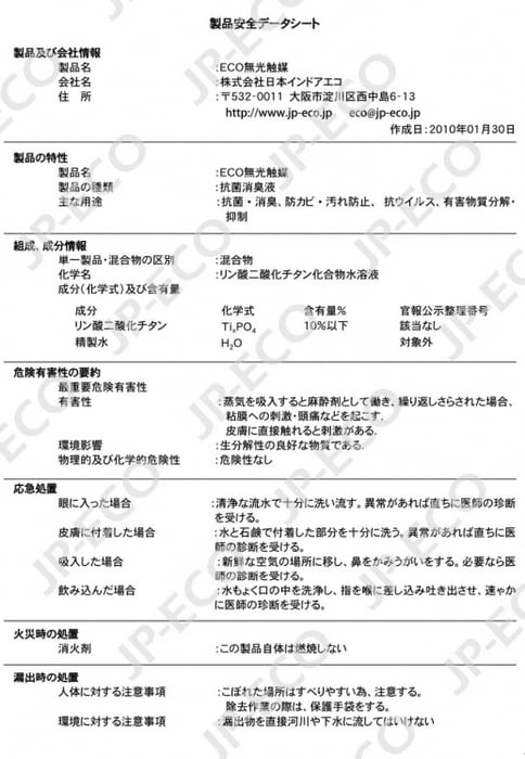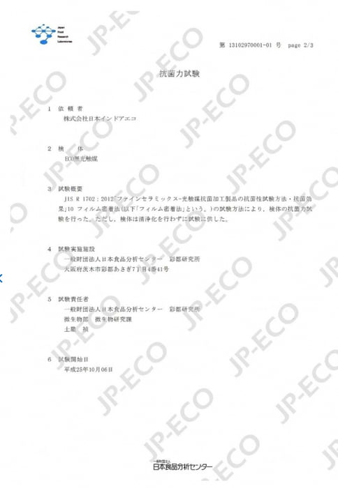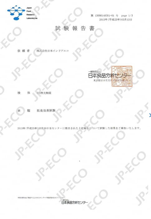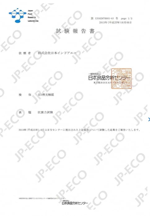 - 日本JFRL、SGS 實驗驗證,光觸媒工業協會(PIAJ)認證