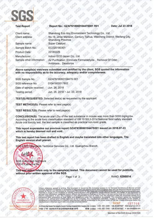 ECO『無光觸媒』是日本進口的新型淨化產品,由無機原料磷酸二氧化鈦和蒸餾水複配而成。 ECO(Disperse 發散層),皆安全無毒,不刺激皮膚,不損害金屬和紡織品,不含任何有機膠黏劑,可 24 小時 不間斷發揮「消臭·抗菌·除甲醛·淨味」效果, 是目前最先進的環保型空氣淨化除甲醛噴劑之一,在日本淨化市場 具有超高佔有率。『無光觸媒』突破了光觸媒必須受光激發的限制,在無光條件下即可發揮優異持久的淨 化效果,實現抗菌、除臭和將有機有害氣體分解為(二氧化碳+水)的除醛、淨味過程